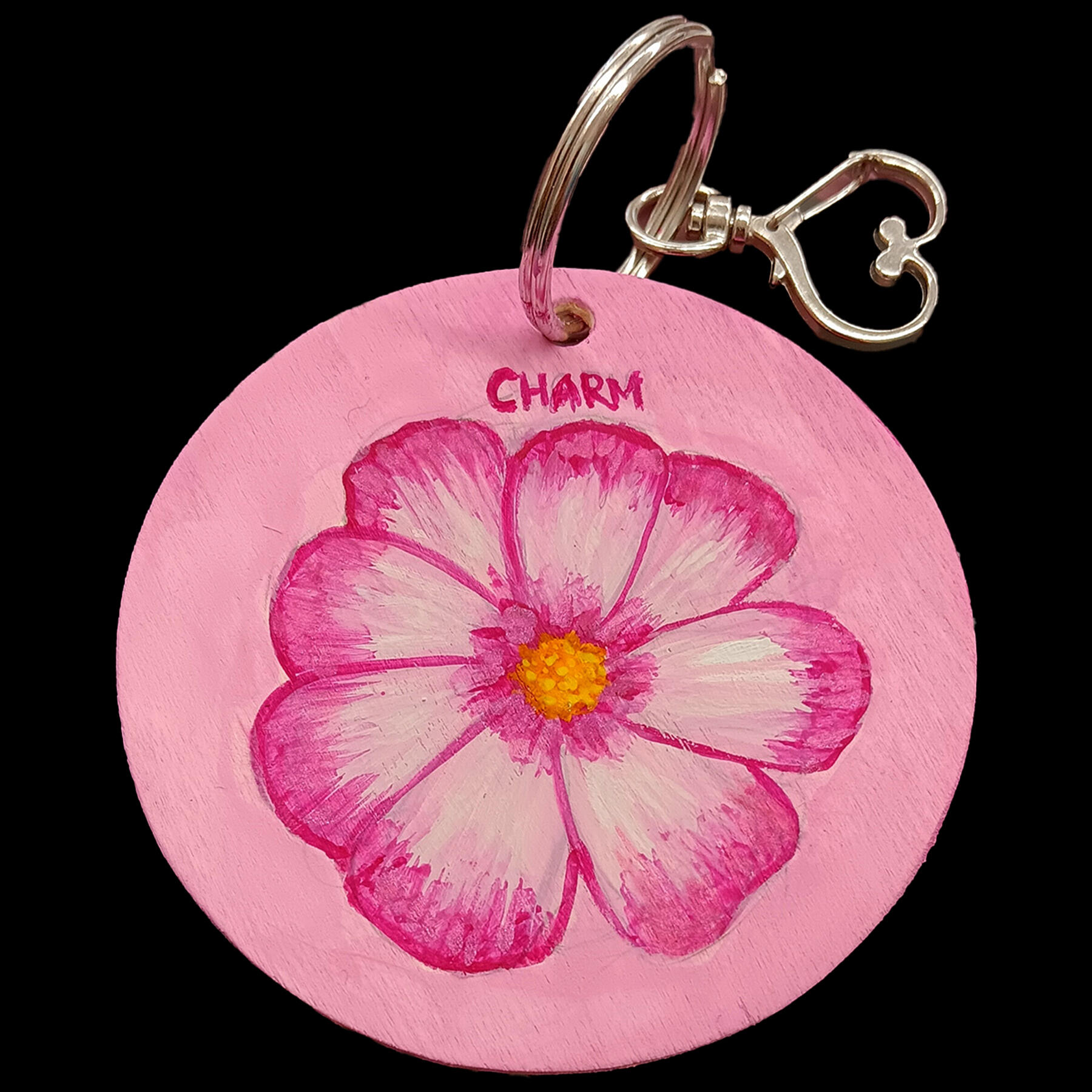 "pink charm" | (2024) Gouache & Watercolor on Wood Charm